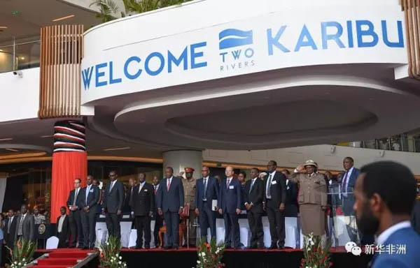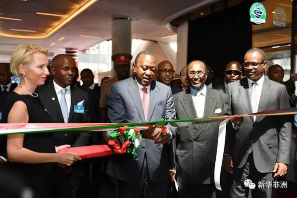 肯尼亞總統(tǒng)肯雅塔(前排中)為雙河商城正式開(kāi)業(yè)剪彩