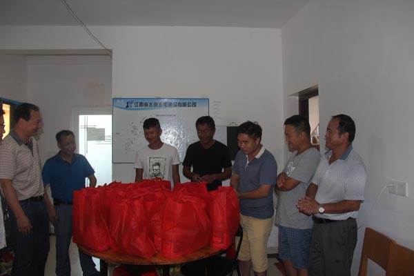 連日來的高溫酷暑牽動著水利廳及公司領導的心。8月30日上午,受董事長王元旦的委托,副總經理曾朝文、工會主席史偉等一行代表水利廳及公司前往樟山防護工程,慰問戰斗在高溫酷暑下的一線員工,并給他們送去降溫防暑的慰問品。